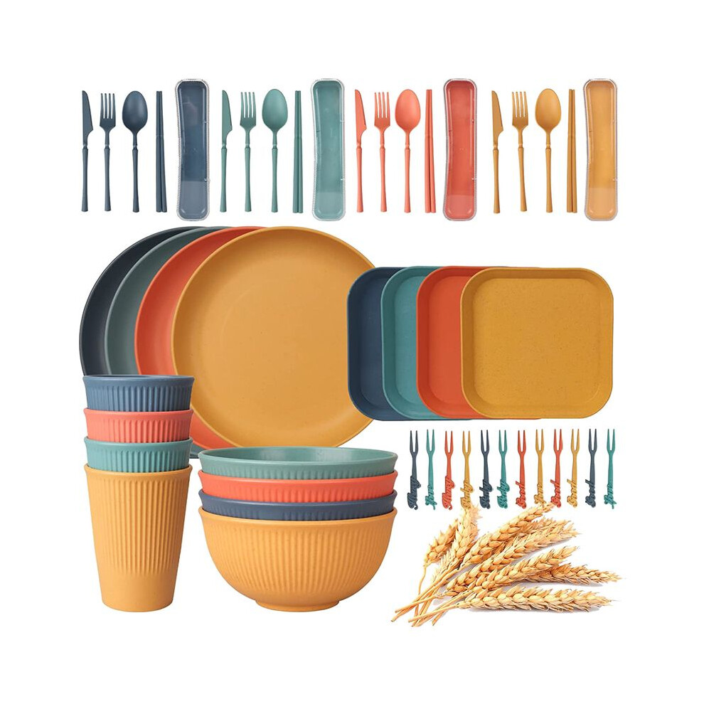 48Pcs Unbreakable Dinnerware Sets for 4 People, Camping Plates and Bowls Set, Picnic Dinner Sets, Serving