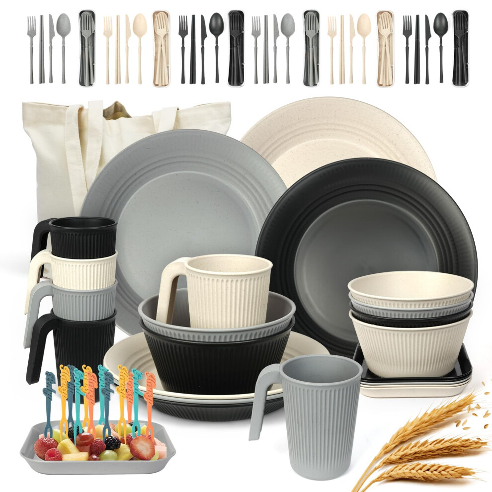 48Pcs Unbreakable Dinnerware Sets for 4 People, Camping Plates and Bowls Set, Picnic Dinner Sets, Se