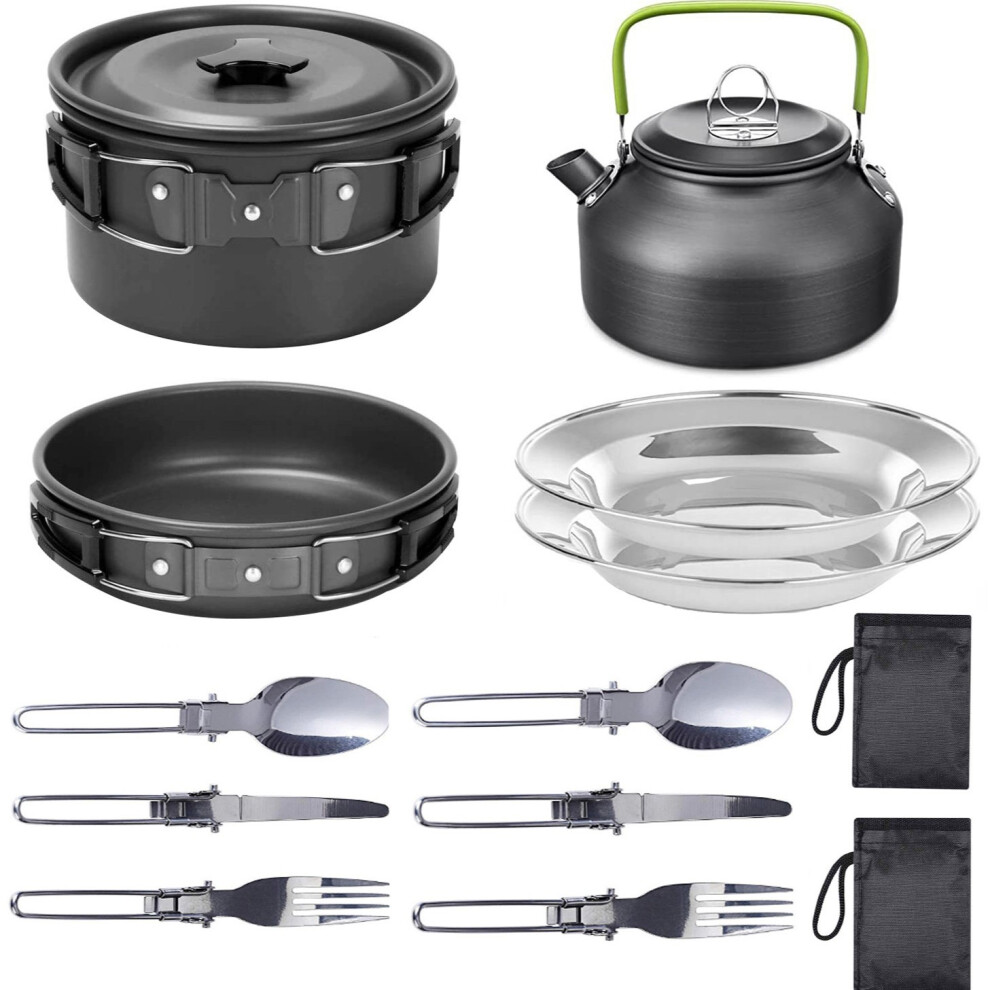 ALLOMN Camping Cookware Set, Outdoor Camping Cooking Set Portable Cooking Mess Kit Pot Pan Sets for Backpacking Picnic Hiking Trekking Picnic Fishing Mountaineering, 1-2 Person Use