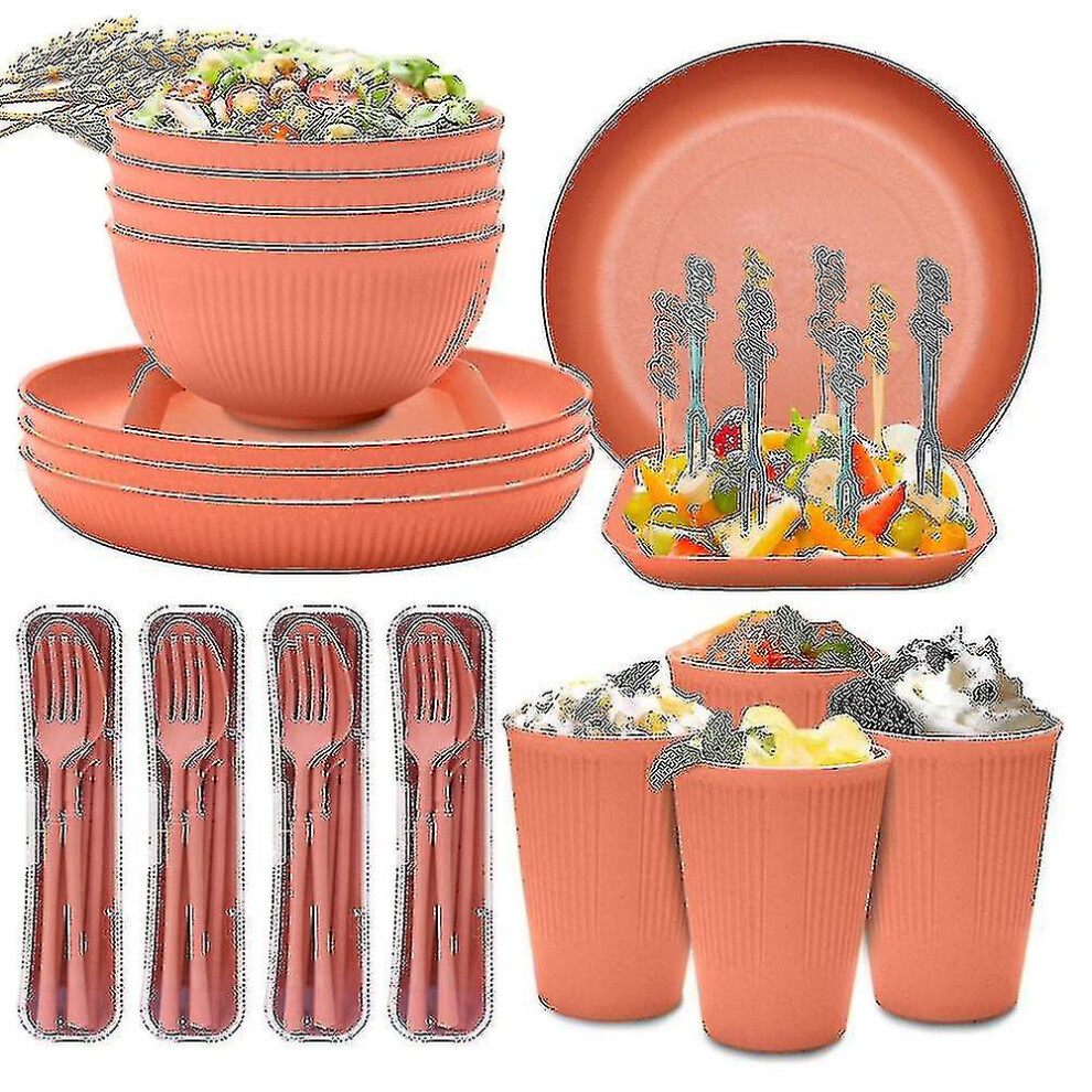 (Orange) Unbreakable Dinnerware Sets Camping Plates And Bowls Set Plastic Picnic Dinner Sets