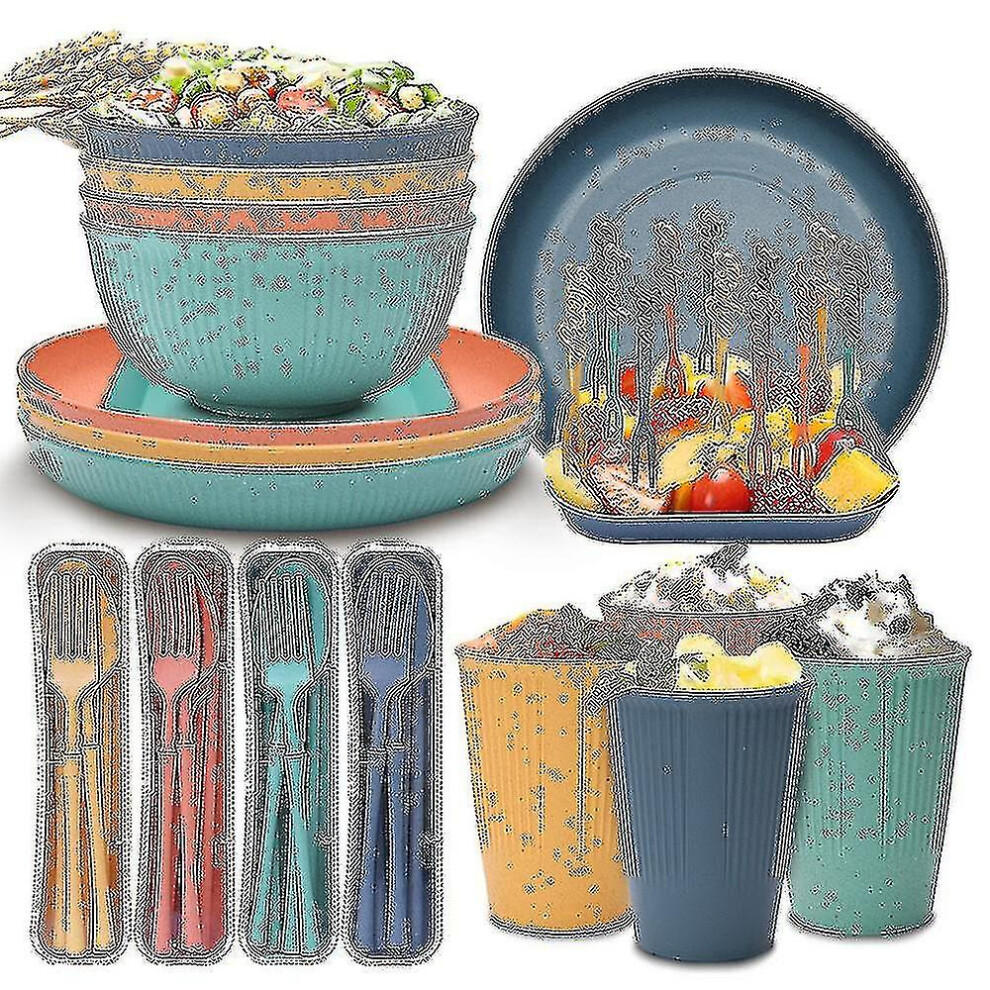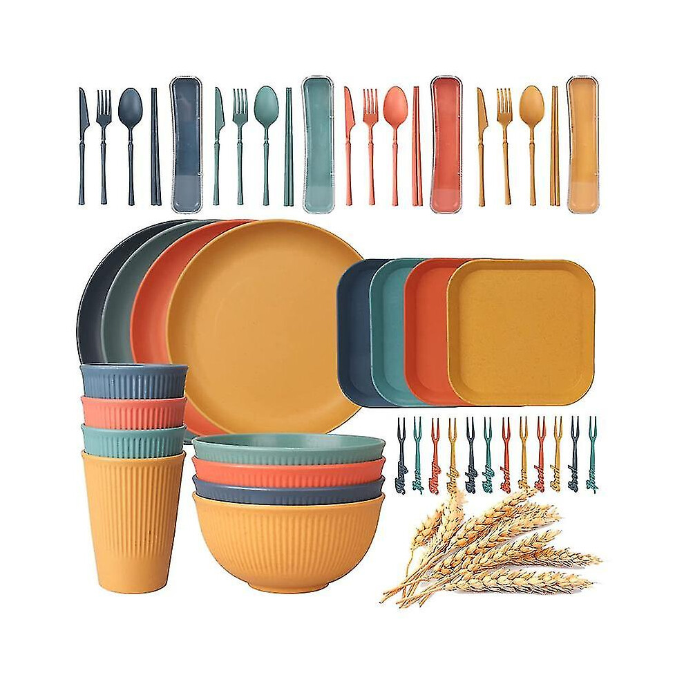 (As show, One size) 48pcs Unbreakable Dinnerware Sets compatible 4 People, Camping Plates And Bowls Set, Picnic Dinner Sets, S-D