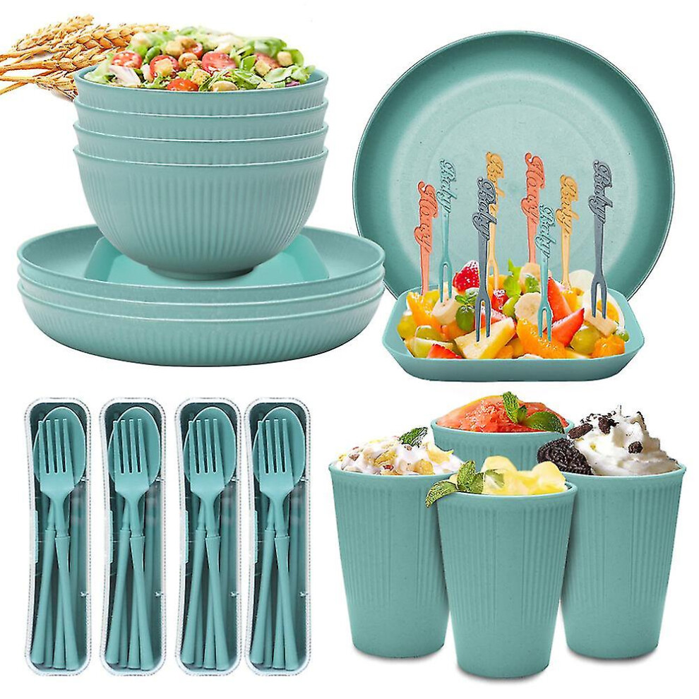 (Green) Unbreakable Dinnerware Sets Camping Plates And Bowls Set Plastic Picnic Dinner Sets