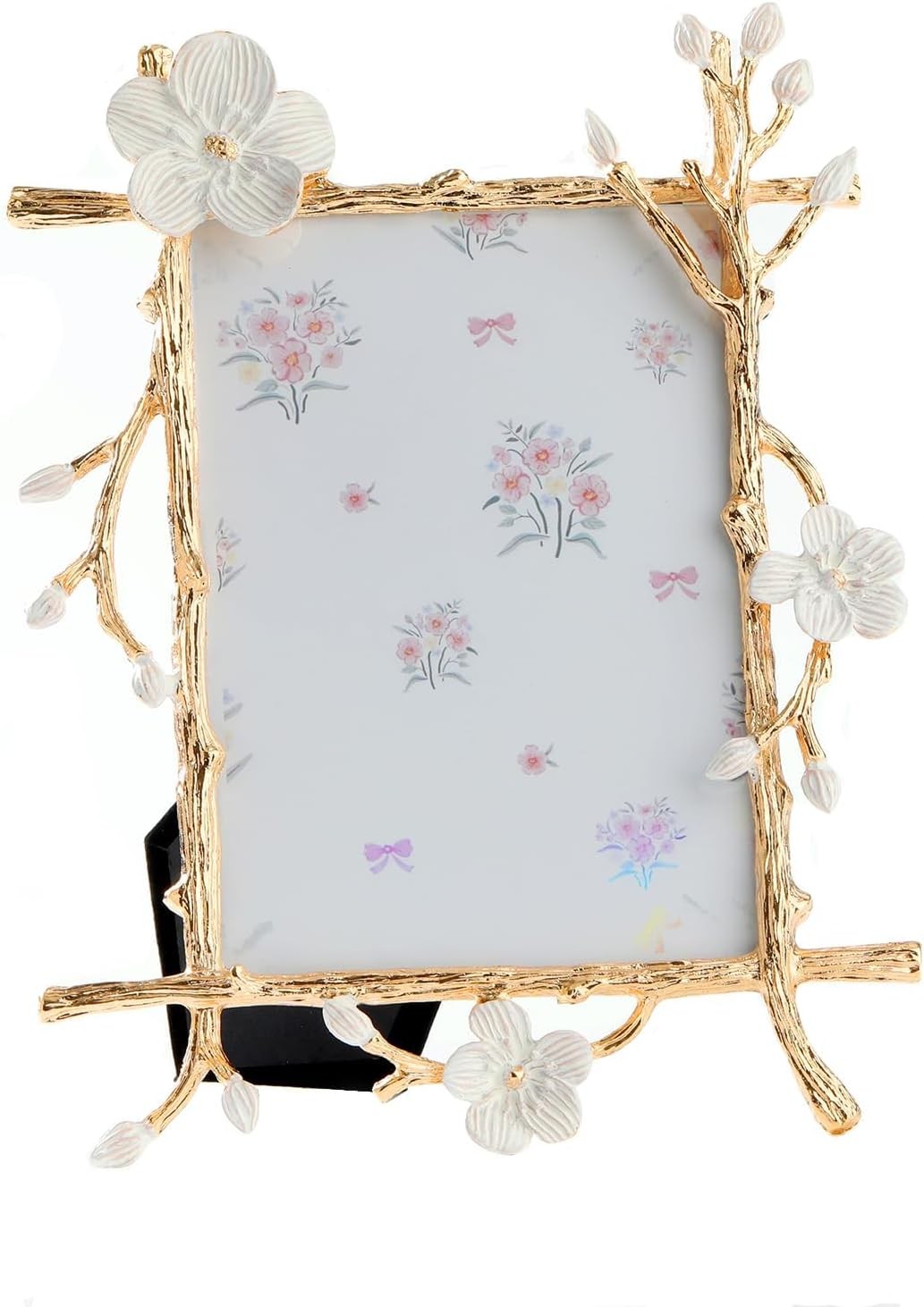 white flower picture frame, 5x7 decorative metal photo frame, gold branches fra
