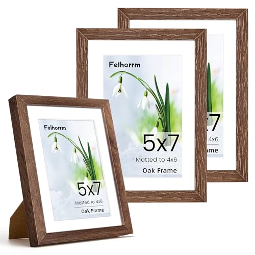 Photo Frame 5x7, 3 Pack Solid Oak Wood 5x7 inch Picture Frame, 5x7 Frame with Mount for 4x6 Photo Frame, 7x5 Picture Frame with Tempered Real Glass for Tabletop and Wall Mounting Display