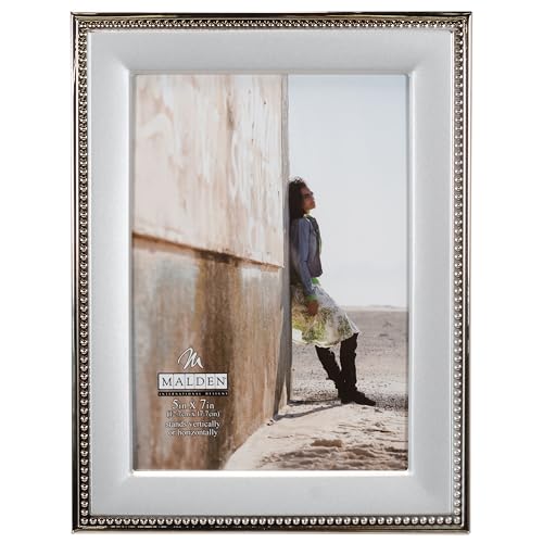Malden International Designs 5294-57 Classic Silver Metal With Silver Beads 2-Tone Picture Frame, 5x7, Silver