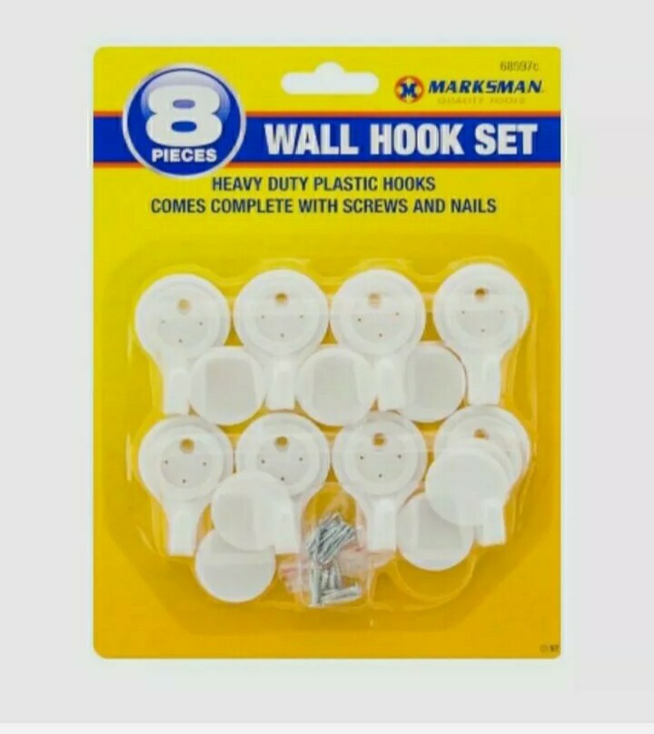 8 x PLASTIC HARD WALL PICTURE HOOKS FRAME PHOTOS MIRROR HANGING HOOK WHITE.