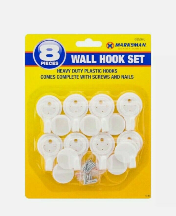8 x Plastic Hard Wall Picture Hooks Frame Photos Mirror Hanging Hook White