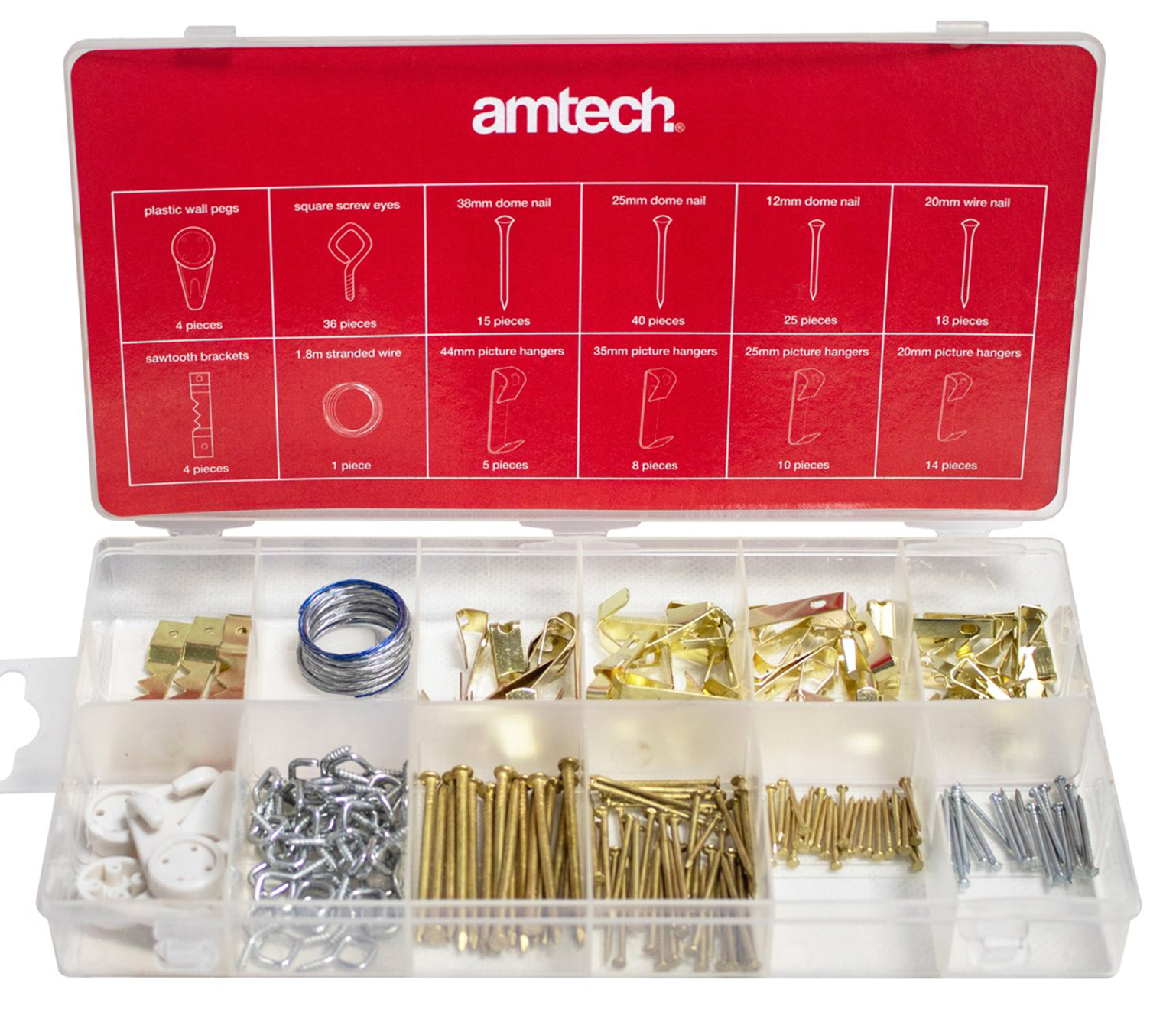 180x Picture Hanging Photo Frame Hooks Nail Wire Wall Art Various Size Amtech