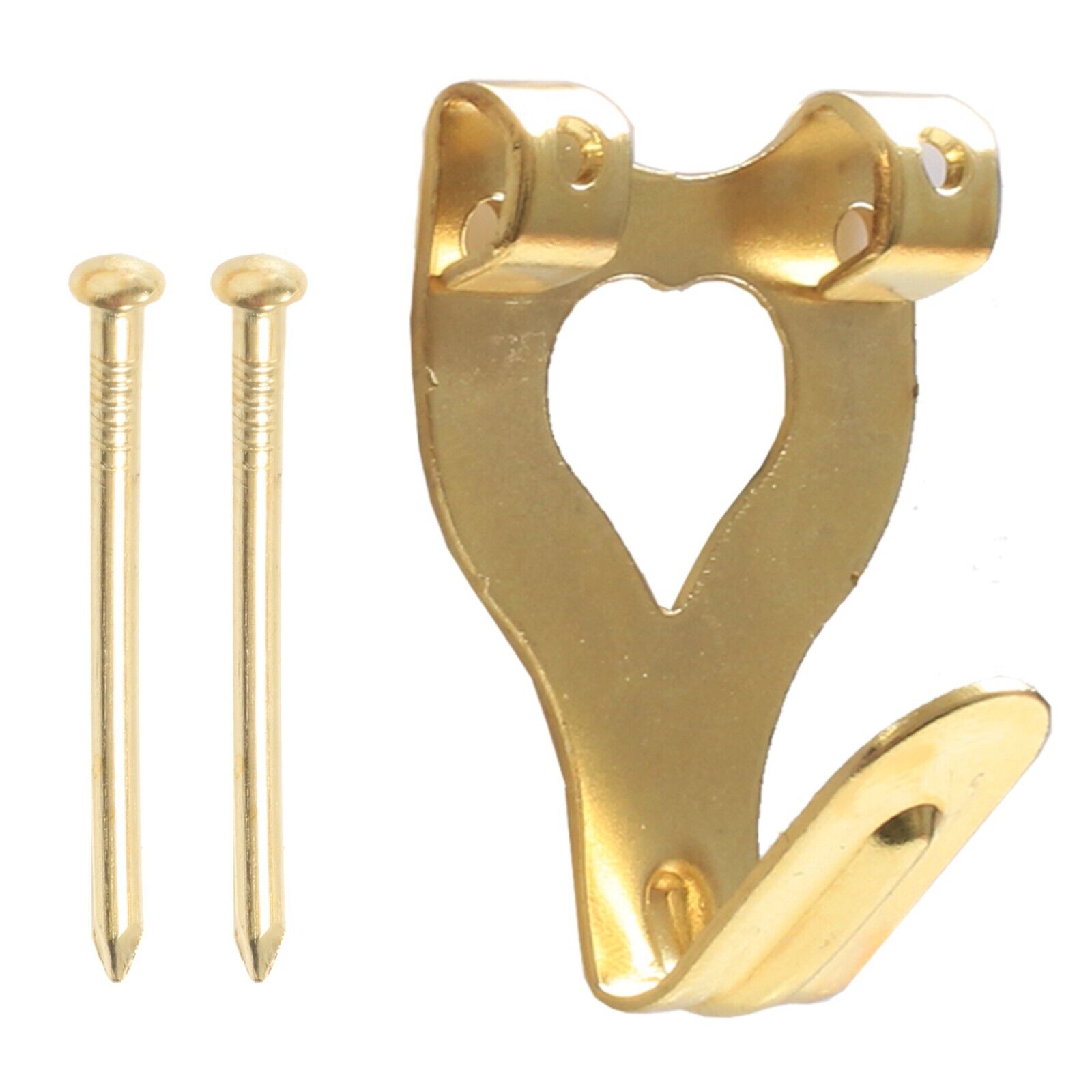 25x DOUBLE BRASS PICTURE FRAME HOOKS & NAILS Photo Canvas Mirror Wall Fixing Pin