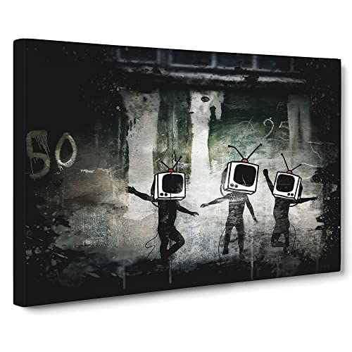 Banksy TV Heads Graffiti Wall Art Canvas Print | Gallery Wrapped 30mm Frame Wall Decor | 24x16 inches | Ready to Hang | Pop Art TV Show Picture | Living Room Bedroom Lounge Office