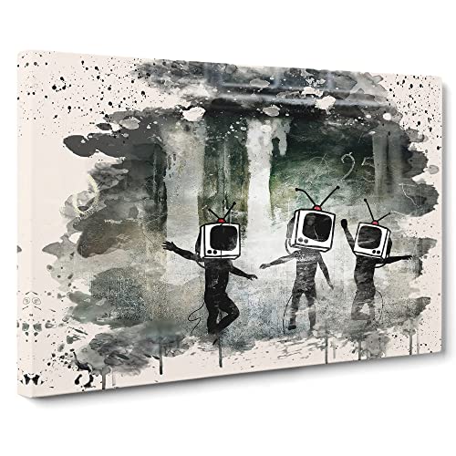 Banksy TV Heads Graffiti Wall Art Canvas Print | Gallery Wrapped 30mm Frame Wall Decor | 20x14 inches | Ready to Hang | Pop Art TV Show Picture | Living Room Bedroom Lounge Office