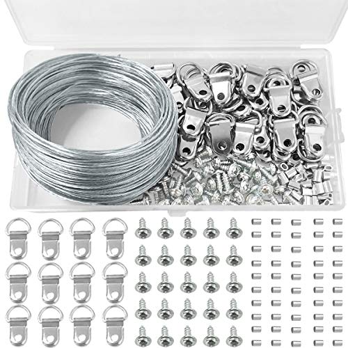 NORTHERN BROTHERS 30M Picture Hanging Wire Picture Hooks Picture Hanging Hooks Picture Hanging Kit with D Ring Picture Hangers, Crimping Loop Sleeve