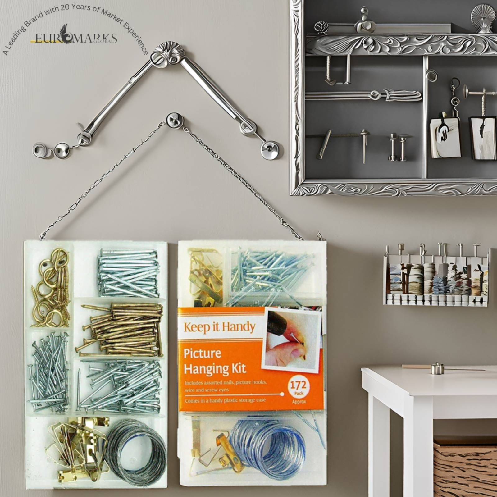 172pk Picture Hanging Kit Set Hooks Nails Wire Photo Frame Mirror Wall Art Kits