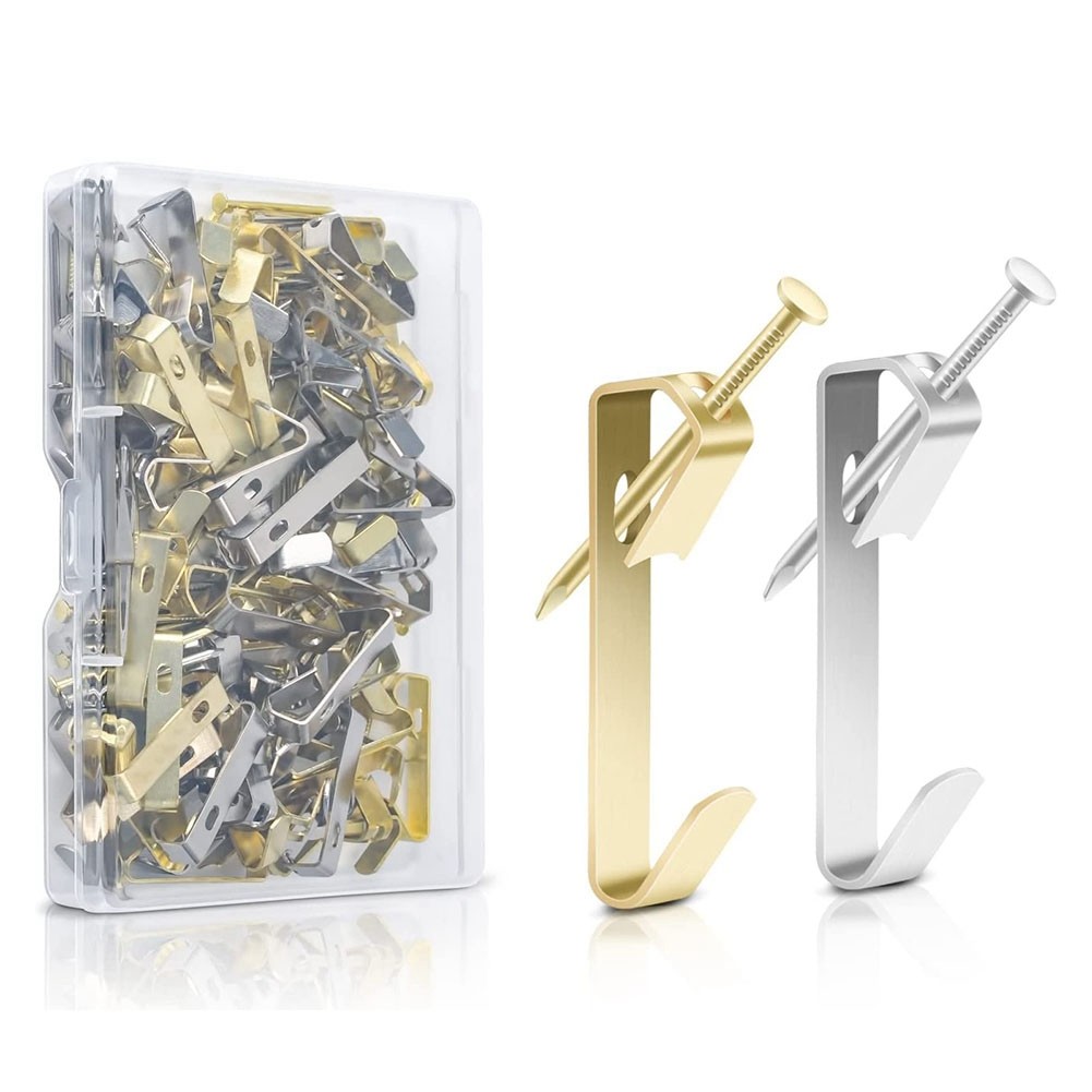 Picture Hooks Hanging Hooks kit,Picture Hooks Heavy Duty Frame Heavy Hanger with Nails. (Gold-40Pcs silver-40Pcs)