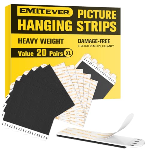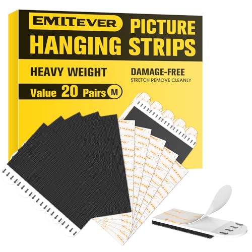 Emitever Picture Hanging Strips Heavy Duty, Large 20 Pairs, No Damage Picture Adhesive Strips, Hook and Loop Mounting Tape Black