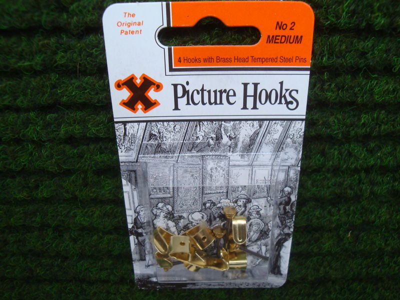 PACK OF 4 SIZE 2 X HOOK PICTURE HOOKS & BRASS HEADED PINS