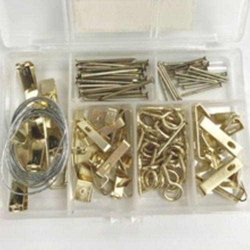 50pc PICTURE HOOK KIT HANGING KIT PHOTO FRAME BRASS HOOKS NAIL WIRE ART FRAME