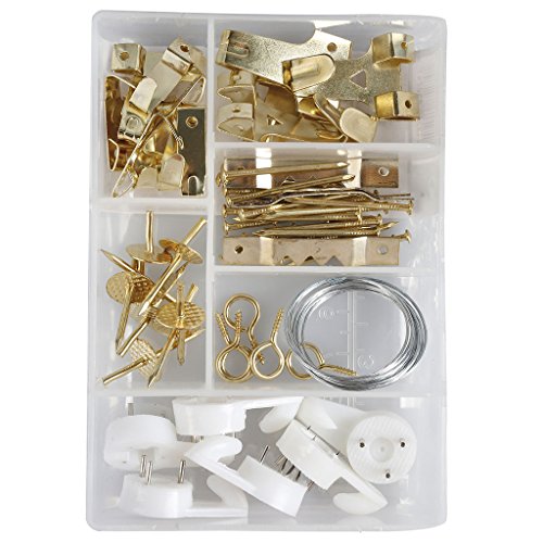Cogex 85274 Picture Hook Assortment, White/Grey/Gold, Set of 60 Pieces