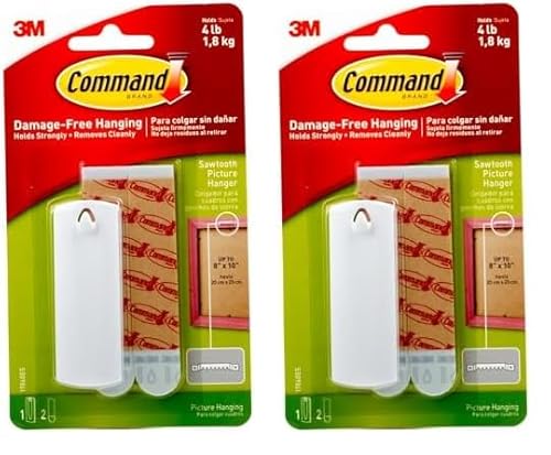 Command 17041 3M Packs of 1 Hook Wire Backed Picture Hanging Hook to Hold Upto 2kg (4lb), White (Pack of 2)