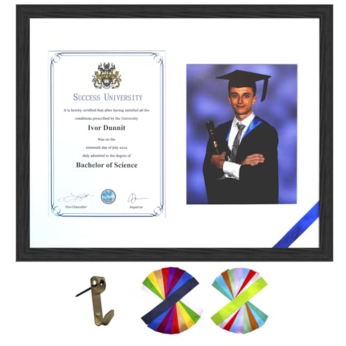 Graduation Frame (55.5cm x 45.2cm) to hold your Graduation Certificate & Photo - Includes 18 coloured ribbons, a brass picture hook & double aperture mount (1 x A4 and 1 x 10"x 8") Graduation Gift