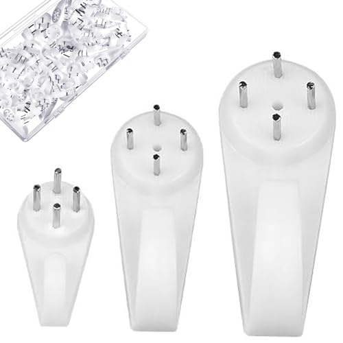 60pcs Non-Trace Picture Hooks for Hard Wall, Picture Hanging Kit for Picture Frame Fixing, Picture Hanger Hook for Plasterboard Walls Drywall Concrete Wall