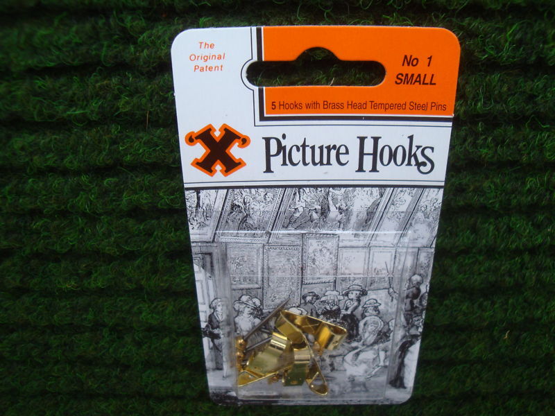PACK OF 5 SIZE 1 X HOOK PICTURE HOOKS & BRASS HEADED PINS