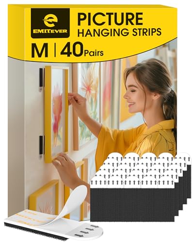 Emitever Picture Hanging Strips Heavy Duty, Large 40 Pairs, No Damage Picture Adhesive Strips, Hook and Loop Mounting Tape Black