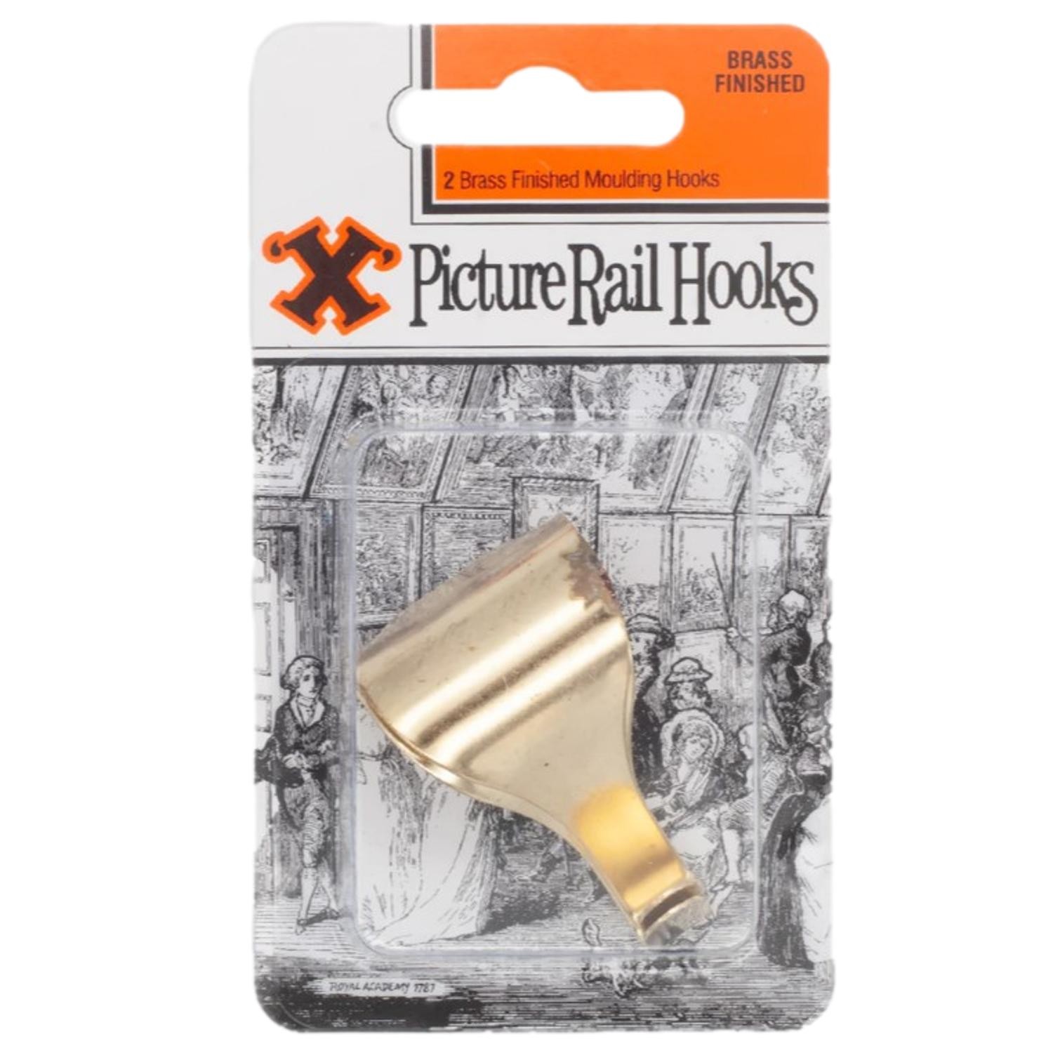 X Picture Rail Hooks Brass Plated 2 Pack Blister 12850