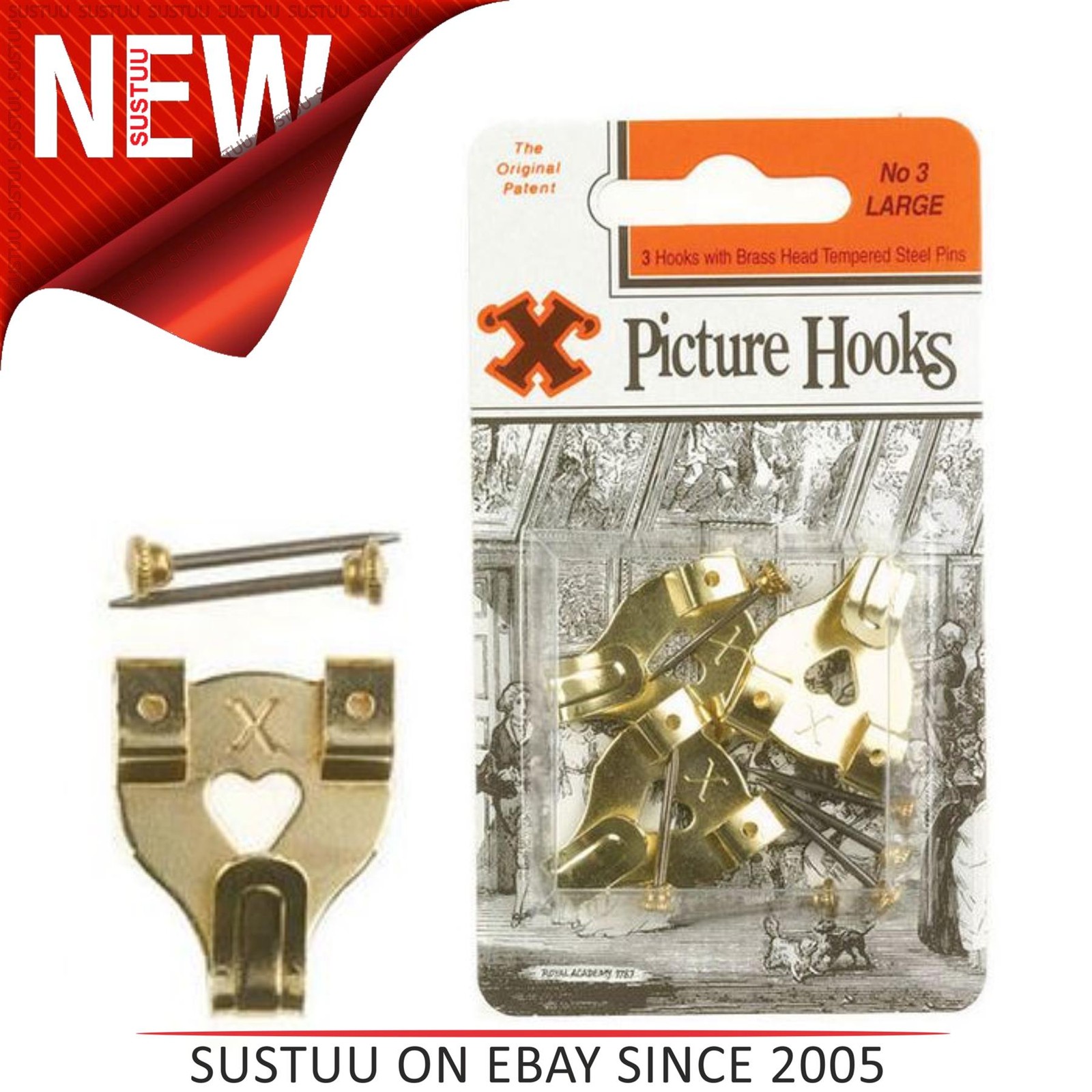 X-HOOKS No.3 Large Brass Plated Picture Hooks (Pack of 20)