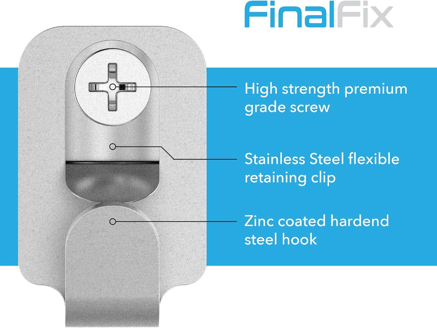 FinalFix Heavy Duty Safety Picture / Mirror Hooks with Screws and Wall Plugs - 15kg Load… (6 Pack), Silver (FF-HK)