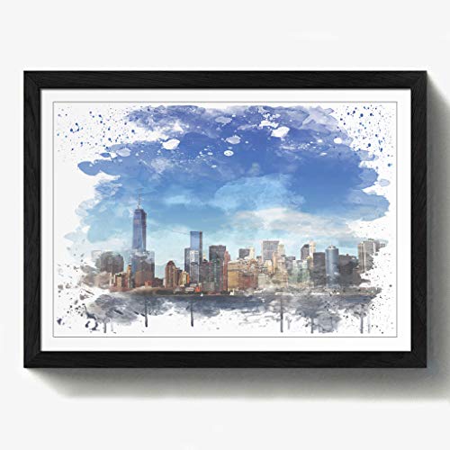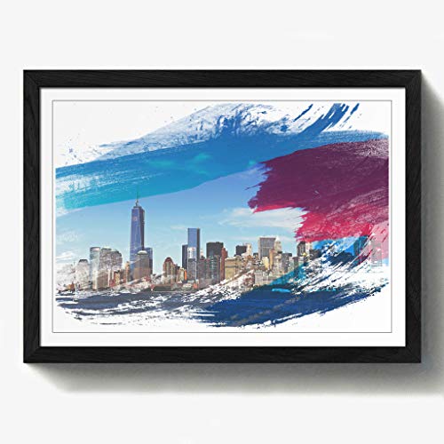 Arty Pie Framed Print Black A2 (24.5x18 Inch) Manhattan New York with Blue Sky V3, Wood, Multi-Colour, 60 x 42 x 2 cm