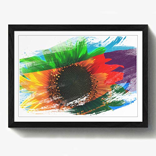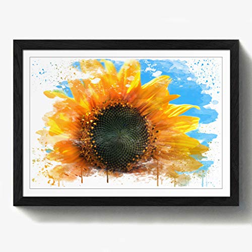Arty Pie Framed Print Black A2 (24.5x18 Inch) Flower Yellow Sunflower and Blue Sky V3, Wood, Multi-Colour, 60 x 42 x 2 cm