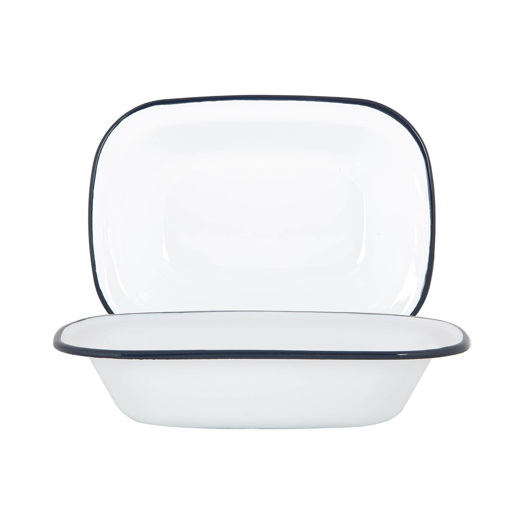 Enamel Pie Dish Set - 2 Piece - Navy Rim - Dishwasher Safe Pie Dishes Enamel Coo