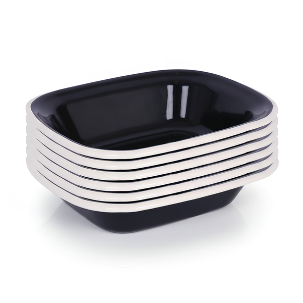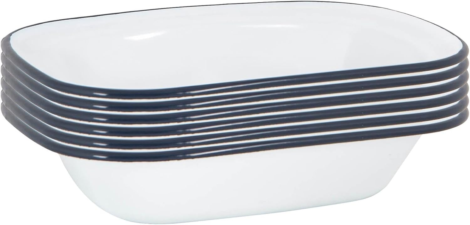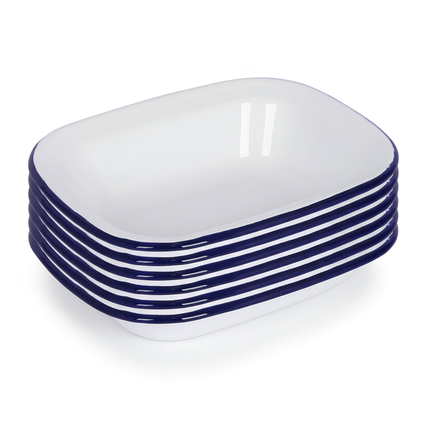16 x 12cm White Enamel Pie Dishes - Navy - Pack of 6