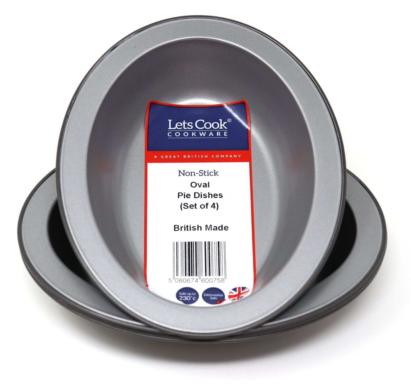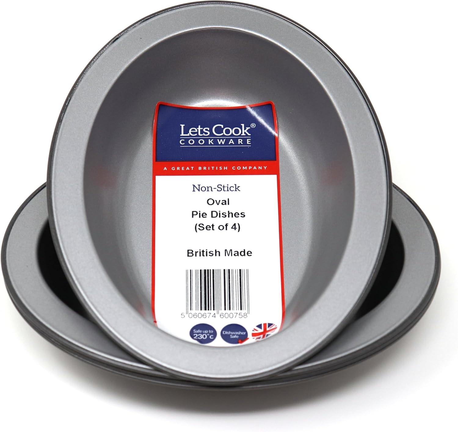 Set of 4 Oval Pie Dishes, British Made with PFOA & BPA Free Non Stick