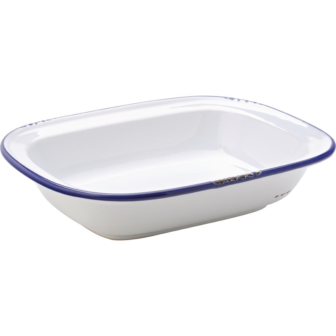 White Enamel Pie Dishes - 22 x 16.5cm - Blue - Pack of 6