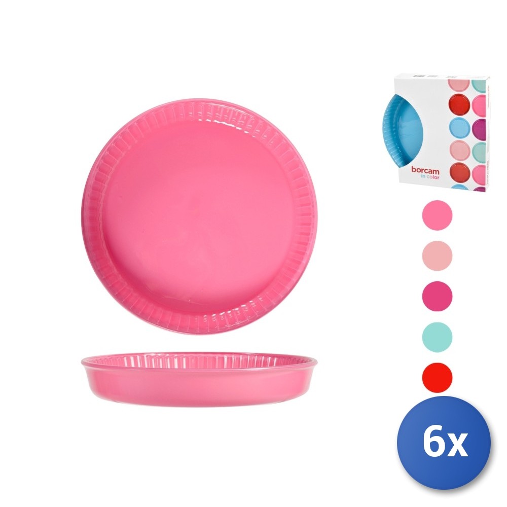 6x Pasabahce Round Borcam Colored Glass Pie Dishes, Assorted 26cm