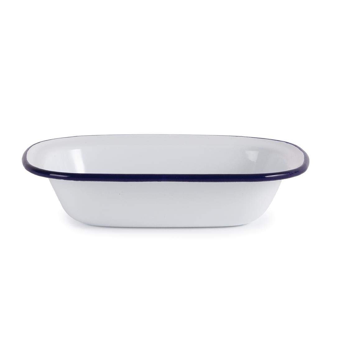 White Enamel Pie Dishes - 18 x 13.5cm - Blue - Pack of 6