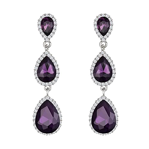 Clearine Women's Gorgeous Teardrop Crystal Long Drop Dangle Pierced Earrings for Wedding Prom Party Amethyst Silver-Tone