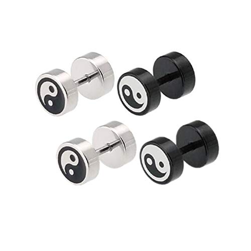 2 Pairs Yin and Yang Stud Earrings 8mm Taichi Screw Balance Gauges Stainless Steel Pierced Earrings for Men Women