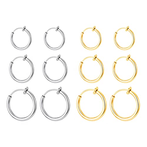 MILACOLATO Non Pierced Hoop Earrings For Women Clip On Hoop Earrings Silver Gold Rose Gold Spring Hoop Earrings Set Small To Big Hoop Fake Earrings Jewellery 20-60cm 6G
