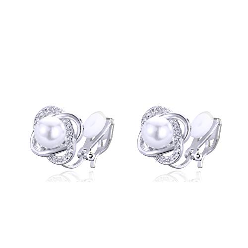 QUKE 10mm Simulated Pearl Clip On Stud Earrings Non Pierced Earrings Jewellery For Women Girls