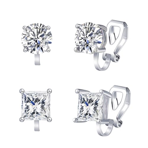 YADOCA Cubic Zirconia Clip on Earrings - Women Hypoallergenic Comfortable Non Pierced Stud Earrings for Wedding and Dance Competitions, Clip-on Earrings Silver