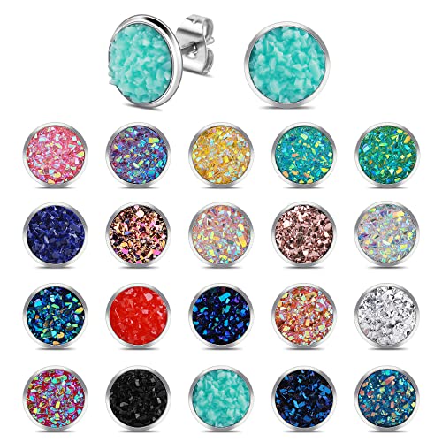 20 Pairs Druzy Studs Earrings Set Round Stud Earrings Stainless Steel Pierced Earrings Jewelry for Women