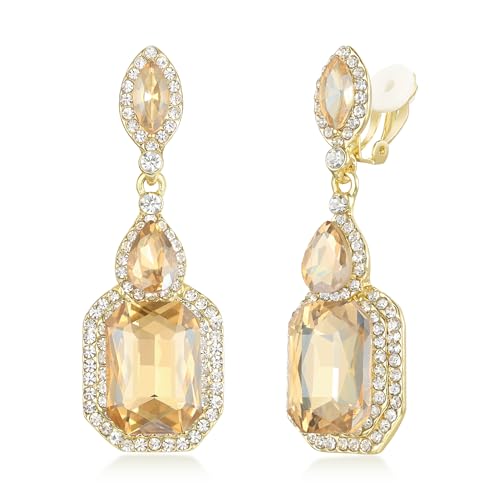 Clearine Vintage Antique Wedding Bridal Statement Costume Diamante Crystal Gemstone Clip On Non-Pierced Dangle Drop Earrings for Women Brown Gold-Tone