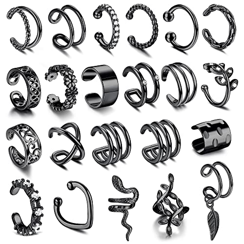 JeweBella 22Pcs Adjustable Ear Cuffs for Women Ear Cuff Earrings Non Piercing Ear Cuff Set Cartilage Clip On Wrap Earring Set Non-Pierced Cuff Earrings For Women Girls Silver/Gold/Rosegold/Black