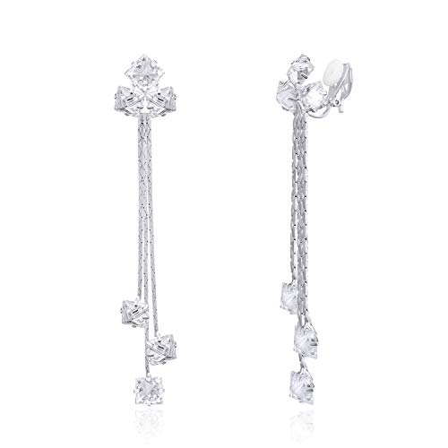 QUKE Woman Cubic Zirconia Crystal Woman Long Drop Dangle Clip On Not Pierced Earrings
