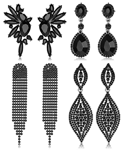 EVER FAITH Black Crystal Earrings for Women, Sparkly Crystal Art Deco Vintage Style Statement Drop Dangle Pierced Earrings Wedding Earring for Brides Bridal Black-Tone