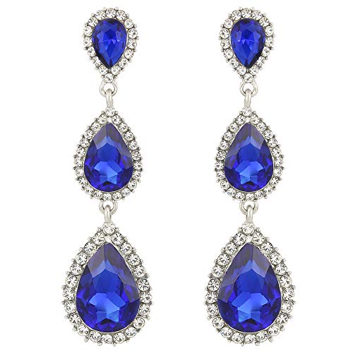 Clearine Women's Gorgeous Small to Large Triple Teardrop Crystal dangle Pierced Earrings Navy Blue Silver-Tone