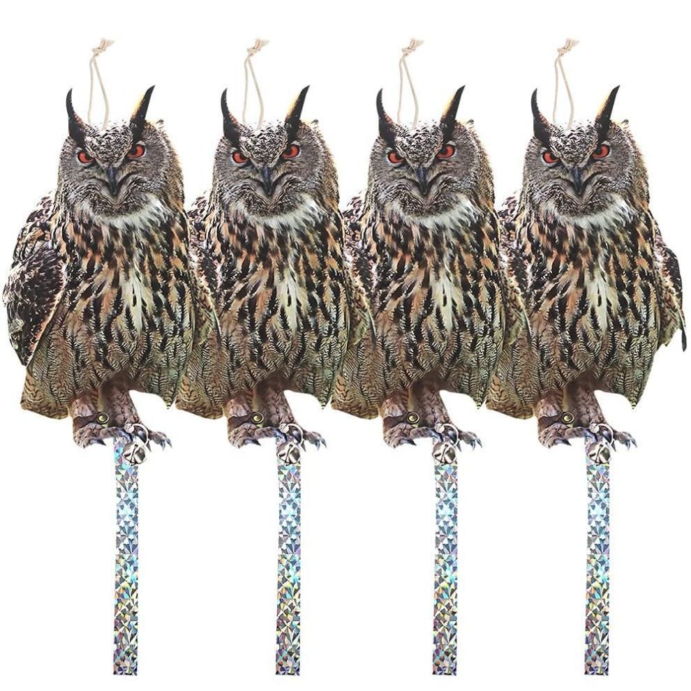 Bird Scarer with Repellent Strip Anti Pigeon Repellent Outdoor Cat Bird Scarecrow Keep Crow Pigeons Away from Balconies Patios Windows Set of 4 Owls
